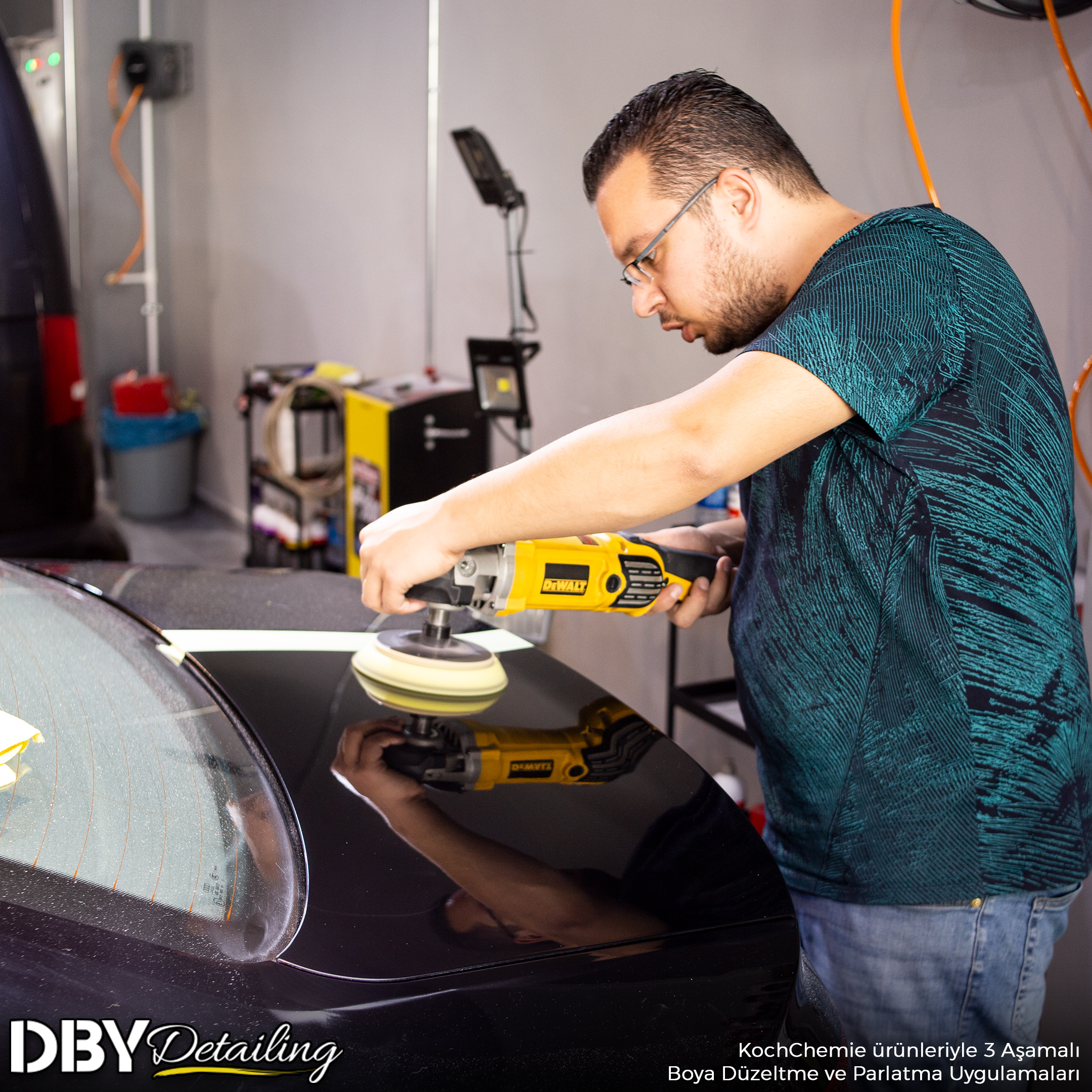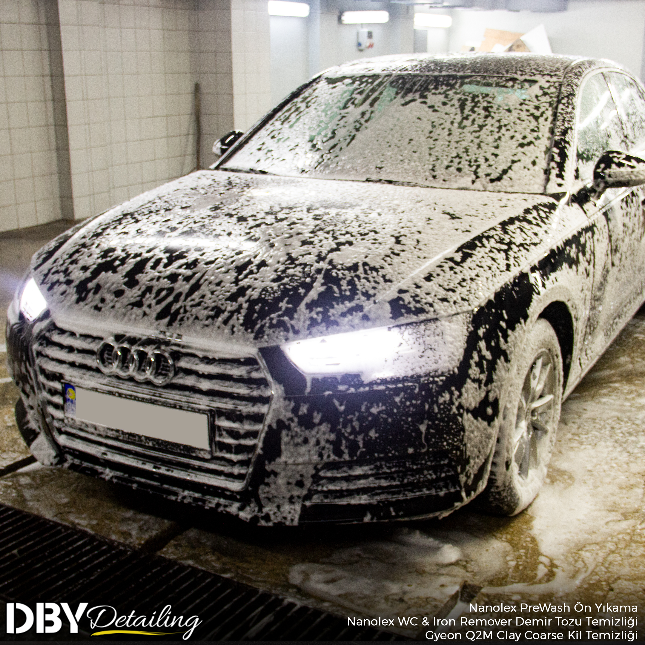 Detay kompleksimizin en alt katındaki yıkama alanında Nanolex PreWash Concentrate kullanarak ön yıkama işlemlerine başladık. Nanolex WC&Iron Remover kullanarak demir tozlarından arındırdığımız aracın boyasına gömülen mikropartiküller için Gyeon Q2M Clay Coarse kullandık. Aracın detaylı motor temizliğini bitirdik ve KochChemie MP kullanarak koruma altına aldık. Ardından aracı Cam Filmi ve Boya Koruma Filmi uygulamalarını tamamladığımız özel alana alara, Llumar ATR-35 cam filmi uygulamasını gerçekleştirdik. Aracı stüdyomuza aldık ve boya durumunu inceledik. KochChemie ürünleri kullanarak 3 Aşamalı Boya Düzeltme ve Parlatma işlemlerini uyguladık. Sırasıyla H8, F5 ve M2 kullanarak kusursuz bir yüzey elde ettik. KochChemie S0.01 kullanarak boya koruma uygulamalarını tamamladığımız aracın camlarında gerekli temizliği sağladıktan sonra, Gtechniq G5 Water Repellent kullanarak cam su itici uyguladık. Lastiklerde Gyeon Q2 Tire kullanarak lastik koruyucu ve parlatıcı uyguladık. Son kontrollerimizi tamamladıktan sonra aracı teslim etmeye hazır hale getirdik.