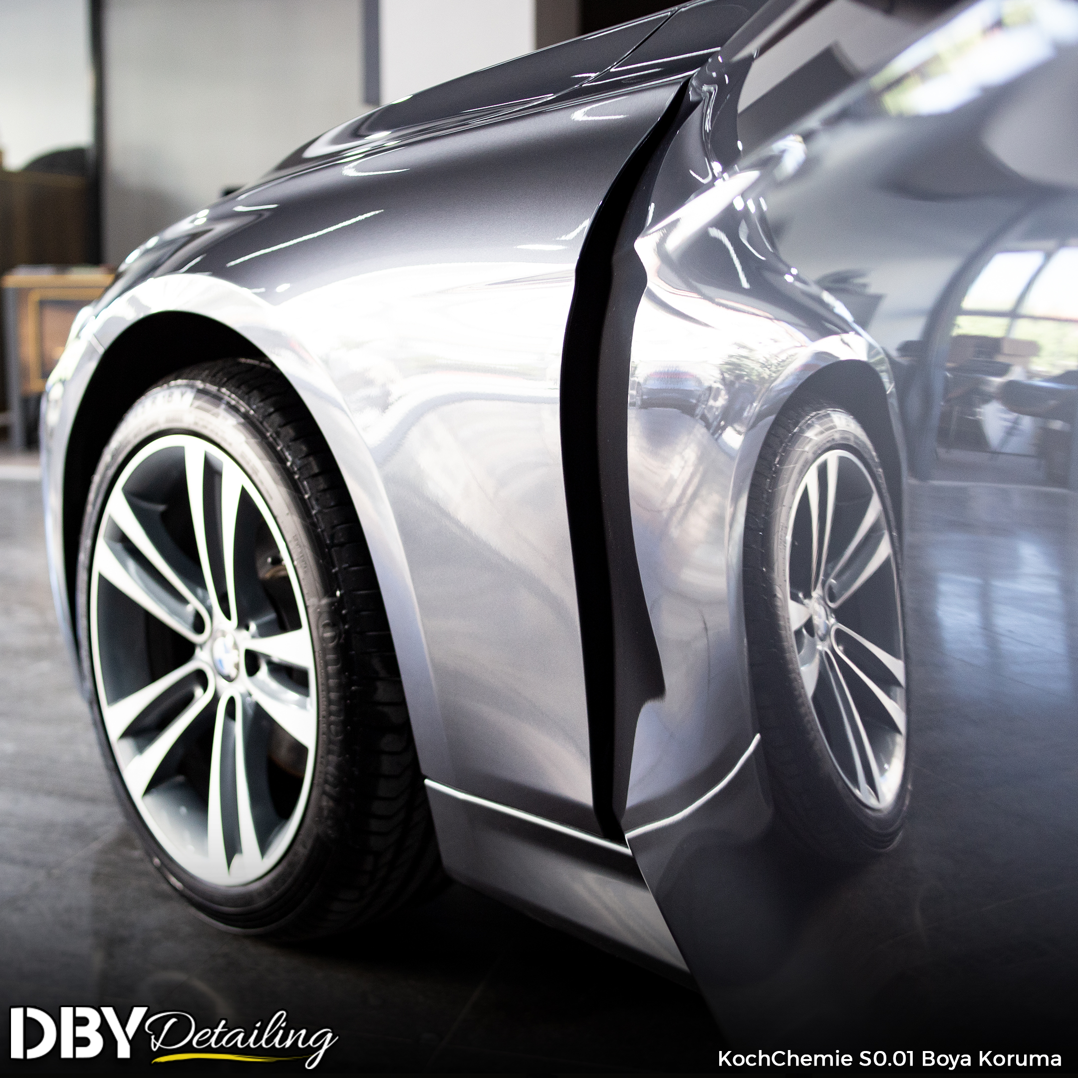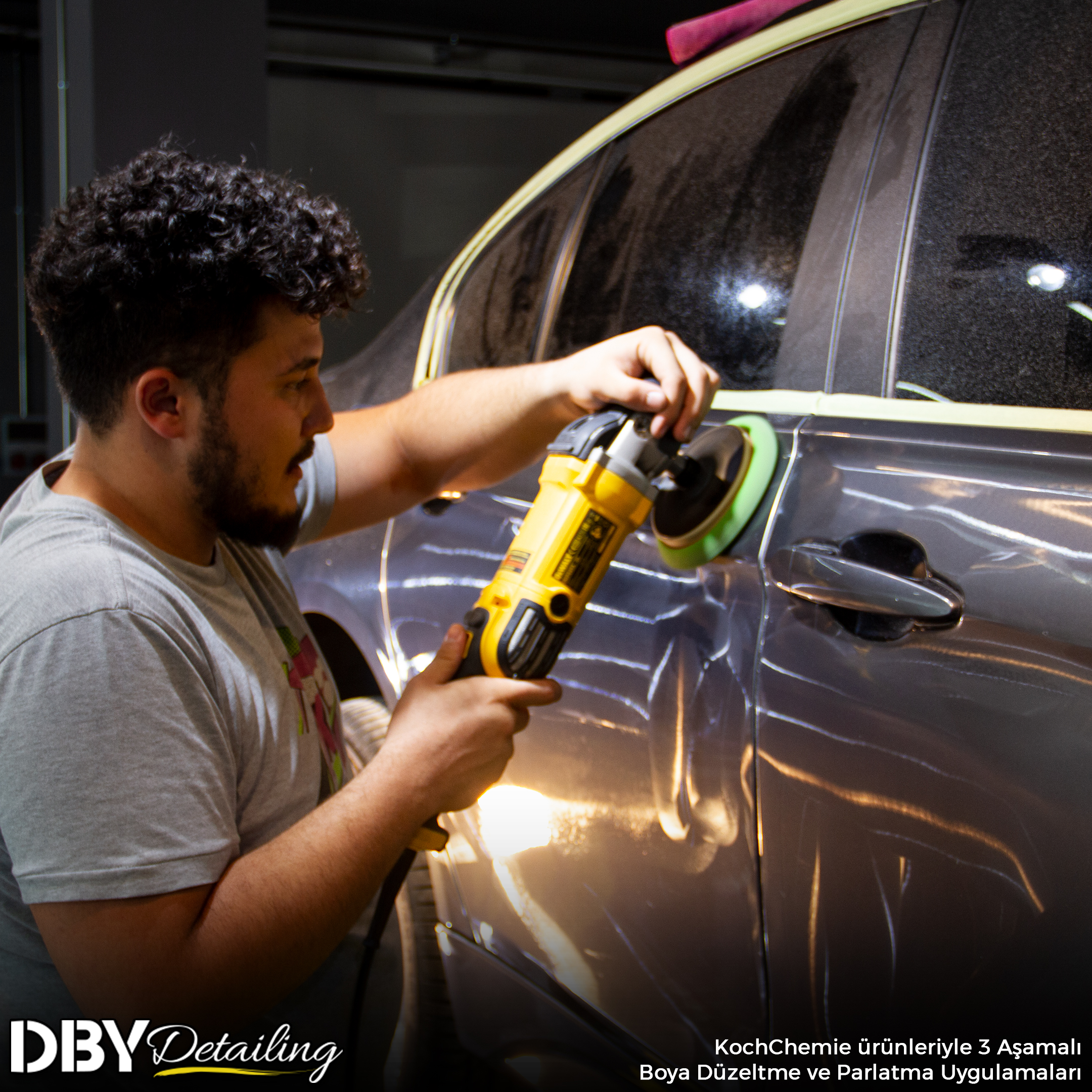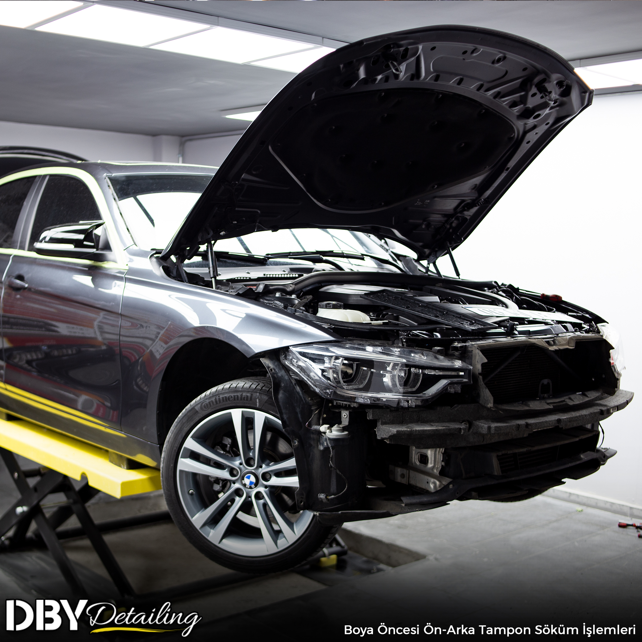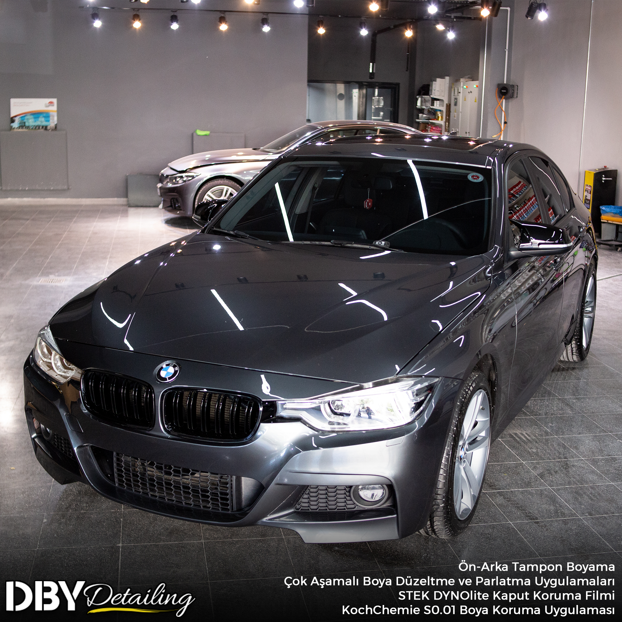 Aracı detay stüdyomuzun en alt katındaki yıkama alanına aldık ve Gyeon Q2M Foam kullanarak ön yıkama işlemlerine başladık. Gyeon Q2M Iron ile demir tozlarından arındırdığımız vernik katmanına gömülen mikro-partiküller için Gyeon Q2M Clay Coarse ile agresif kil temizliğini tamamladık. Detaylı motor temizliği uygulamasının ardından KochChemie MP kullanarak motor koruma uygulamasını bitirdik. Ardından aracı detay stüdyomuza taşıdık. 3M Maskeleme Bantları yardımıyla kauçuk ve plastik aksamları geçici olarak koruma altına aldıktan sonra KochChemie ürünleri ile 3 Aşamalı Boya Düzeltme ve Parlatma işlemlerimizi uyguladık. STEK DYNOlite ile kaput koruma filmi uygulamalarını tamamladıktan sonra, aracın tamponları söküldü ve orta katta yer alan yeni boyahanemizde işlemlere başladık. M paket görünümü elde etmek için Yüzey hazırlığını tamamladıktan sonra Baslac ürünleri kullanarak ön, arka tamponlar ve marşpiyellerde boya işlemleri tamamlandı. Tamamen kuruyan tamponların boya düzeltme ve parlatma işlemlerini bitirdikten sonra araca montajını gerçekleştirdik. KochChemie S0.01 kullanarak boya koruma uygulamasını tamamladığımız aracın camlarında gerekli temizliğin ardından Gyeon Q2 View Cam Su İtici uyguladık. Son kontrollerimizi gerçekleştirdikten sonra Gyeon Q2 Tire ile lastik koruyucu-parlatıcı uyguladık ve aracı teslim ettik.