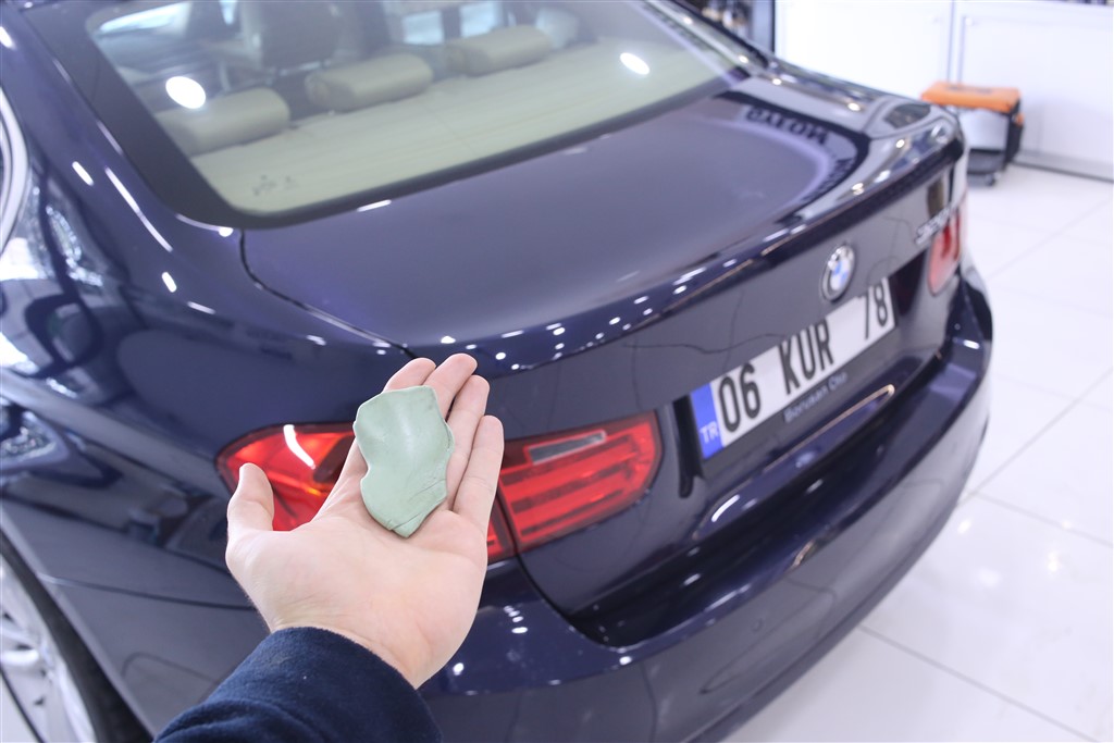 Detay stüdyomuzun misafirlerinden BMW 3.20i’nin detaylı temizlik işlemlerini ve Gyeon Iron kullanarak demir tozu temizliği işlemlerini tamamladık. Aracın boya düzeltme ve parlatma işlemlerine hazırlık aşamasında, yüzeydeki mikropartikülleri gidermek için Gyeon Q2M Clay kullandık. Kil temizliğini tamamladıktan sonra boyasız dış plastik aksamları, cam fitillerini ve polisaj aşamasında zarar görebilecek her aksamı 3M Maskeleme Bantları ile koruma altına aldık.