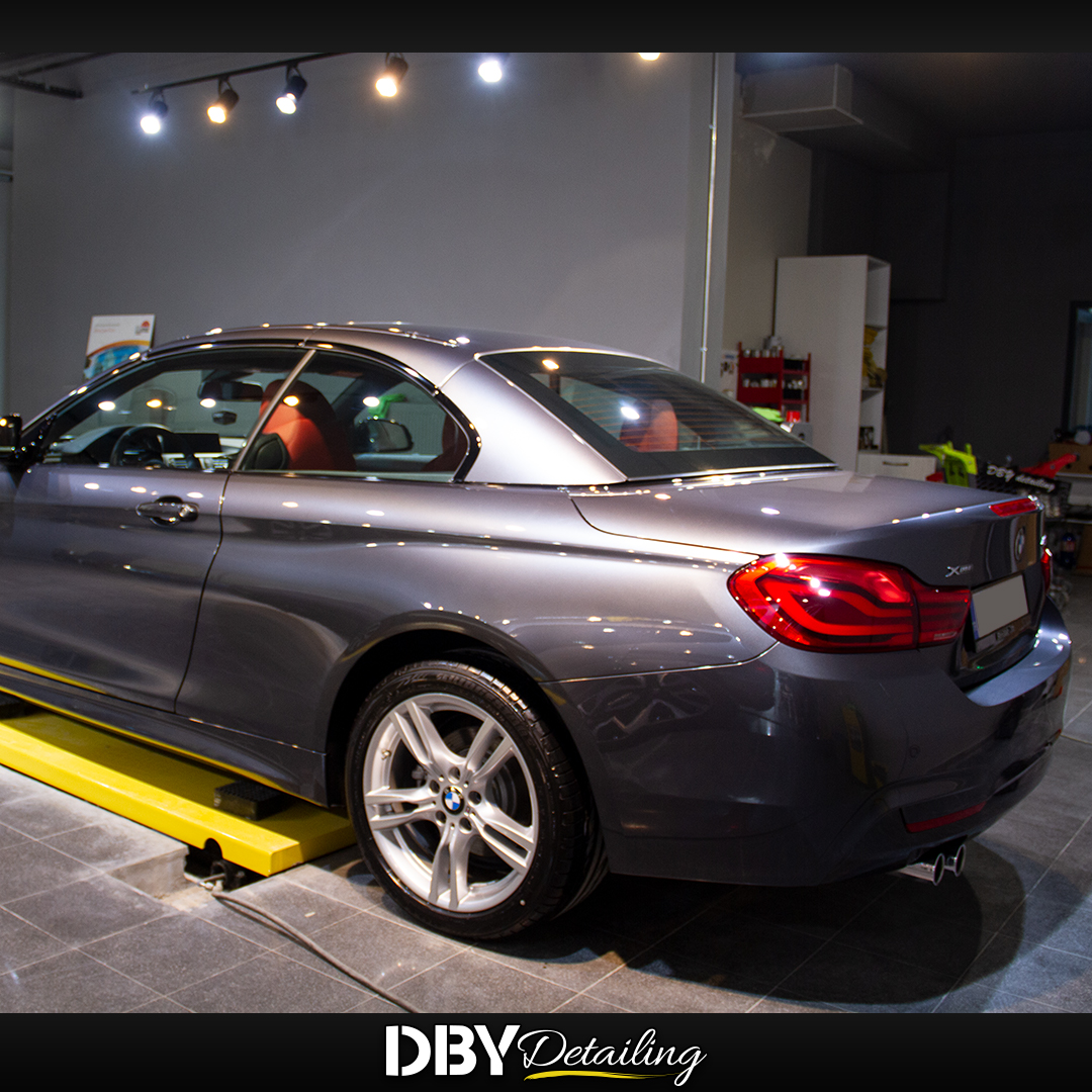BMW 4.30 Cabrio, detay stüdyomuzun konuğuydu. Aracın çok aşamalı boya düzeltme ve parlatma uygulamalarını tamamladıktan sonra, sadece sertifika sahibi detay stüdyolarında kullanılabilen Gtechniq Crystal Serum Black ile seramik kaplama uygulamasını gerçekleştirdik.