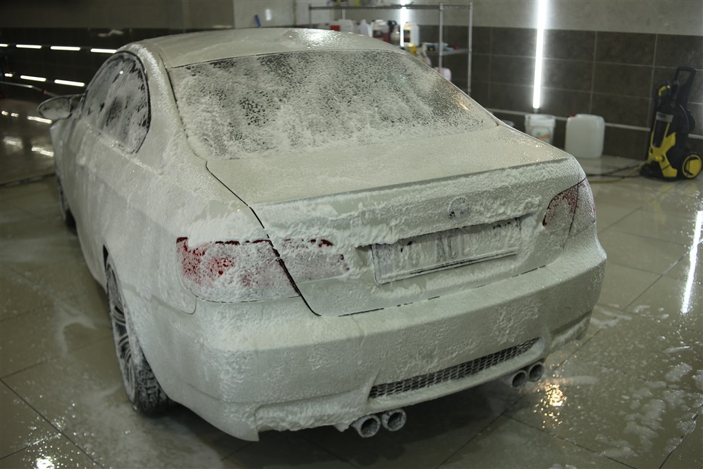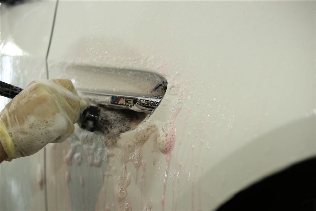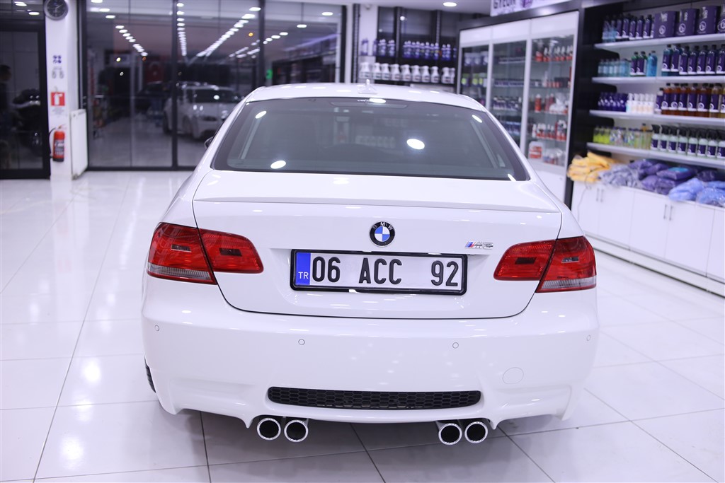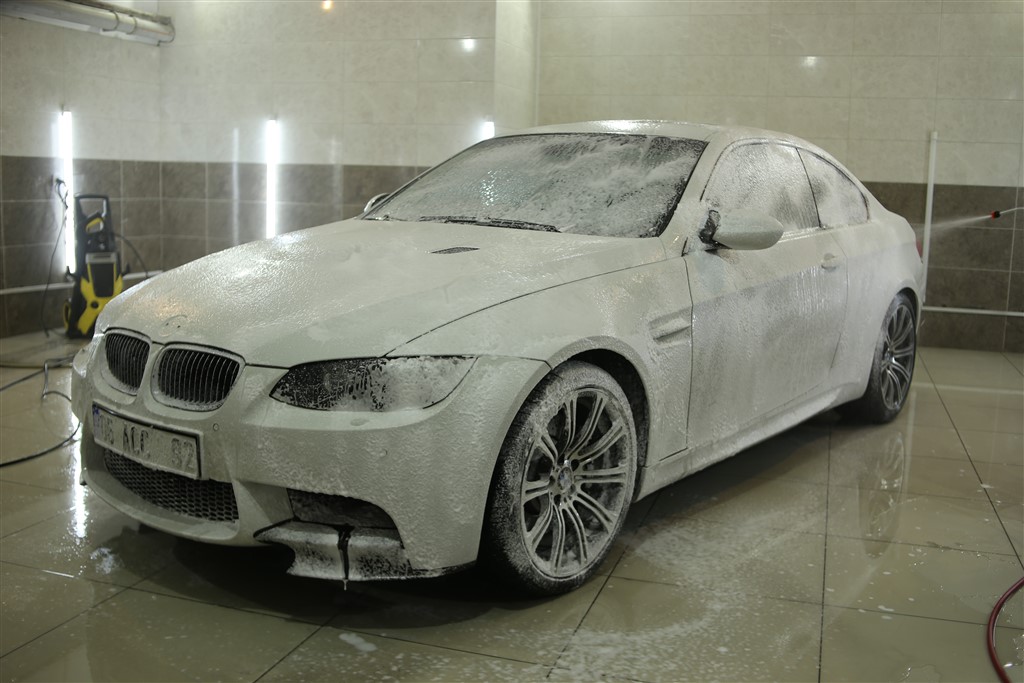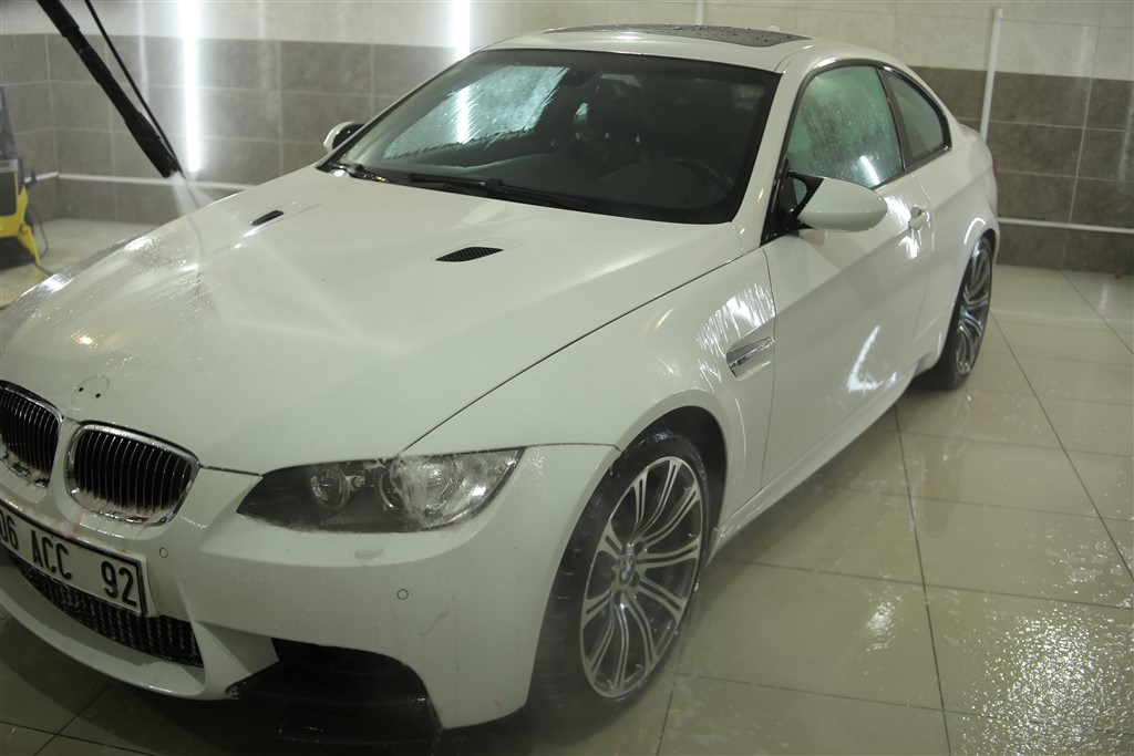 Detay stüdyomuzun bir diğer misafiri, yollarda görmeye pek de alışık olmadığımız BMW M3 aracın detaylı temizlik işlemlerine başladık ve demir tozu temizliğini Gyeon Iron kullanarak tamamladık. Yüzeyde uzun zamandır yapışık vaziyette kalmış mikro-partikülleri arındırmak için Gyeon Q2M Clay kullandık. Aracın dışındaki boyasız plastik aksamları, kapı fitillerini ve polisaj aşamasında zarar görebilecek her trimi 3M Maskeleme Bantlarıyla koruma altına aldık. İlk olarak aracın egzozundaki kararmaları giderdik. Aracın boya düzeltme ve parlatma işlemleri için Koch-Chemie H8 ile polisaja başladık. Bu aşamada yüzeydeki yoğun çizikleri giderdik. Polisaj pedinin yarattığı hareleri Koch-Chemie M2 ile giderdikten ve boyayı parlattıktan sonra aracımız korumaya hazır hale geldi.