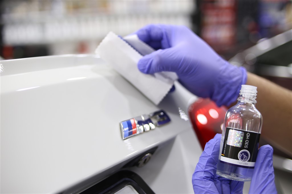 Koruma ürününe geçmeden önce, polisaj yağlarından ve tozlardan kurtulmak için aracı tekrar yıkadık. Ardından Gyeon Prep ile yüzeyi koruma ürünlerine hazır hale getirdik. Aracın kaputunda Llumar PPF Gloss Şeffaf Boya Koruma Filmleri ile kaput koruma filmi uygulaması gerçekleştirildi. Ardından sadece yetkili ve sertifikalandırılmış detay stüdyolarının uygulayabildiği Nanolex si3D HD ile seramik kaplama uygulaması gerçekleştirildi. Aracın dışında korunmamış parça kalmaması için Gyeon Rim ile seramik jant kaplama uygulaması tamamlandı.