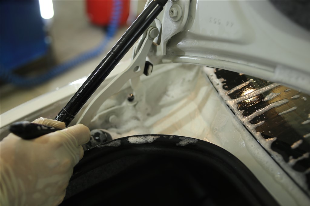 Aracın detaylı iç temizliği ve sterilizasyon işlemleri tamamlandıktan sonra deri kullanılan bütün aksamlarda Gyeon Leathershield kullanarak deri koruyucu kaplama uygulamasını gerçekleştirdik. Böylece hem deri bakımı, hem de deri koruması tamamlanmış oldu. Aracın camlarında Gyeon View kullanarak cam su itici uygulamasını tamamladık ve aracı sahibine teslim etmeye hazır hale getirdik.