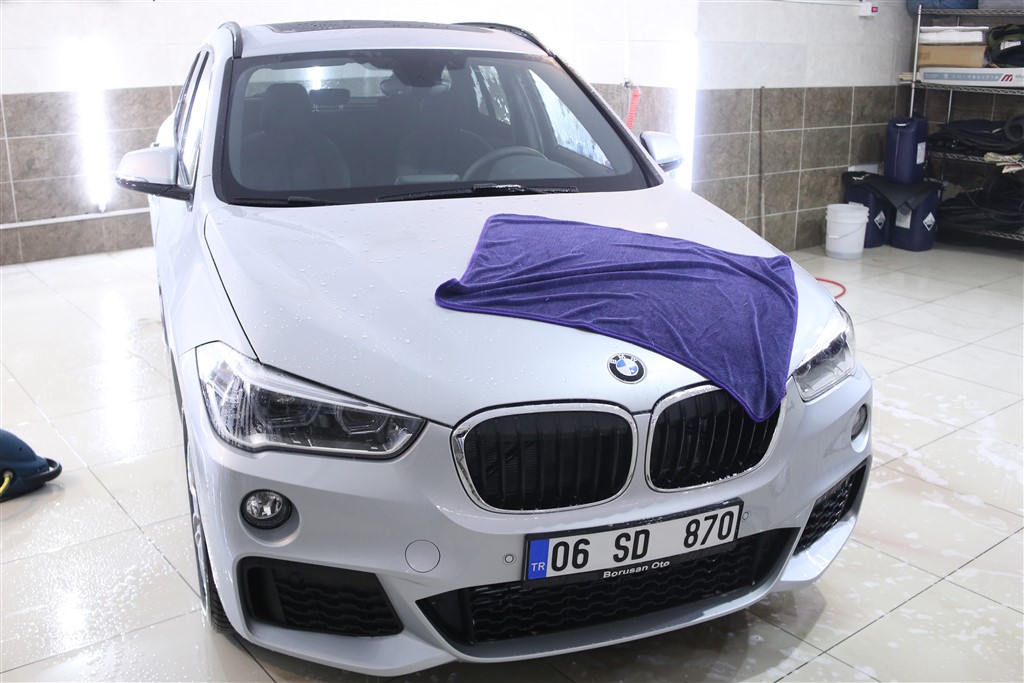 Detay stüdyomuzun misafiri BMW X1’in detaylı temizlik işlemlerini tamamladık ve Gyeon Iron ile demir tozu temizliğini tamamladık. Aracın yüzeyini incelediğimizde çok fazla kontaminasyon ve çizik mevcuttu. Polisaj aşamasına hazırlık için Gyeon Clay ile kil temizliğine başladık. Ardından aracın üzerindeki boyasız plastikleri 3M Maskeleme Bantları ile yalıttık. Böylece polisaj pedinin yaratacağı kalıcı hasarların önüne geçmiş olduk.