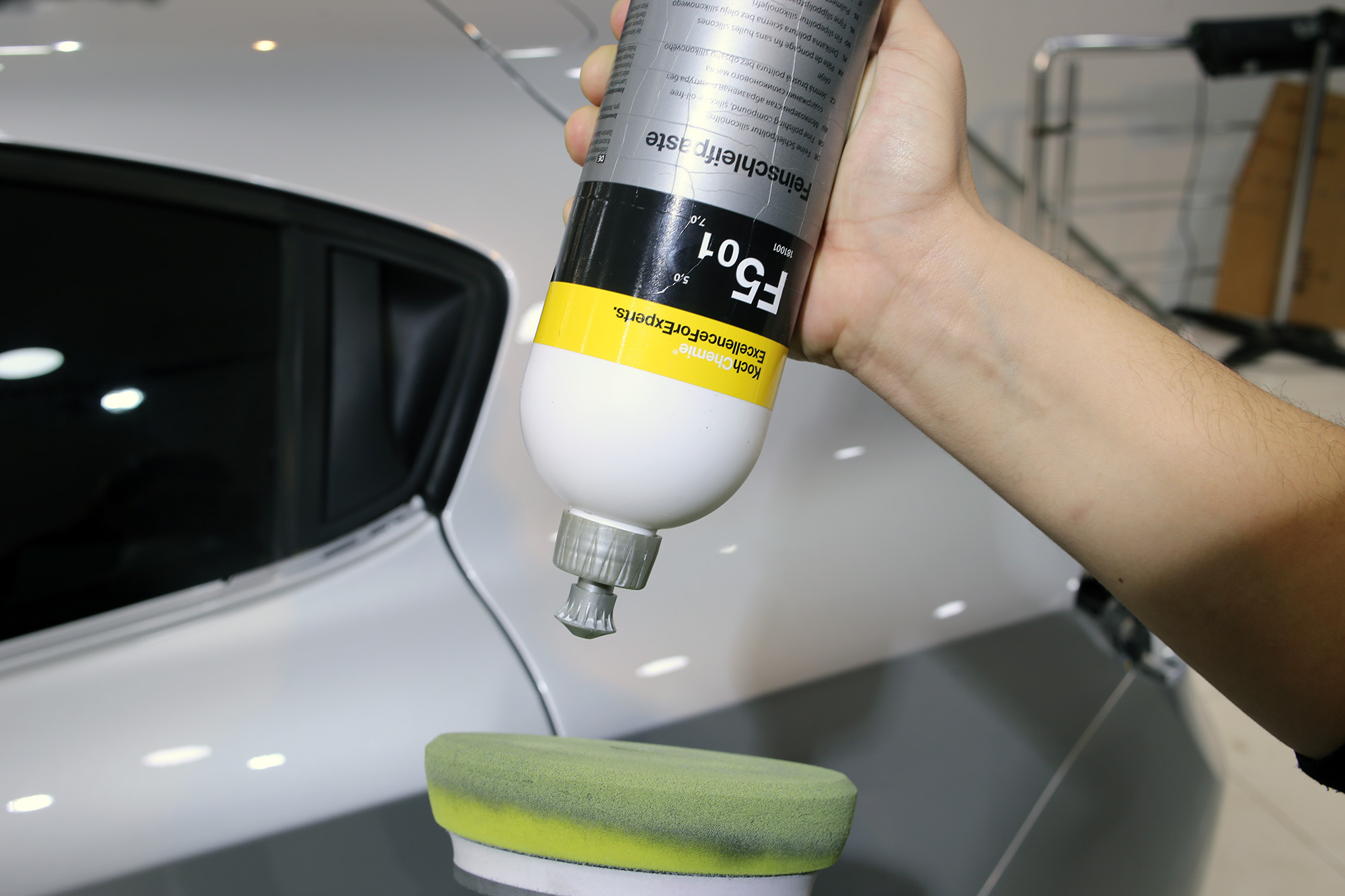 Aracınızın boyalı yüzeylerini kil ile temizledikten sonra boya üzerinde kalıntı kalmadığından emin oluruz. Polisaj aşamasında plastik parçalara zarar gelmemesi için maskeleme işlemine başlarız. Aracınızın boyasını detaylı olarak inceledikten sonra, gerekli ped ve ürün kombinasyonlarını belirleyip uygulamaya başlarız. Bu aşamada ilk önceliğimiz yüzeydeki çizikleri ve matlığı gidermektir. Düzgün bir yüzey elde ettiğimizde parlatma ve yüzeydeki polisaj kusurlarını gidermek için daha ince aşındırmalar yaparız. Bu esnada makina parkurumuzdaki farklı ekipman ve pedlerden faydalanarak, minimum aşındırma ile maksimum parlaklık elde etmeyi amaçlarız.