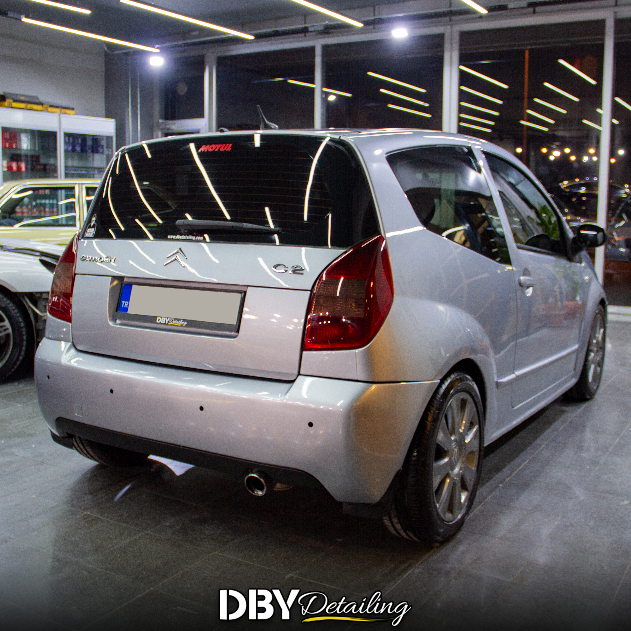 Detay kompleksimizin projelerinden biri, Citroen C2. Aracın komple boya uygulaması gerçekleştirdikten sonra detaylı iç temizlik uygulamalarını tamamladık. Ardından aracın kaputunda ve farlarında şeffaf boya koruma filmi uygulamalarını gerçekleştirdik. Nanolex HybridWax kullanarak boya koruma işlemlerini tamamladık. Aracın uygulamalarını içeren detaylı videosunu DBY Detailing Youtube kanalından izleyebilirsiniz.