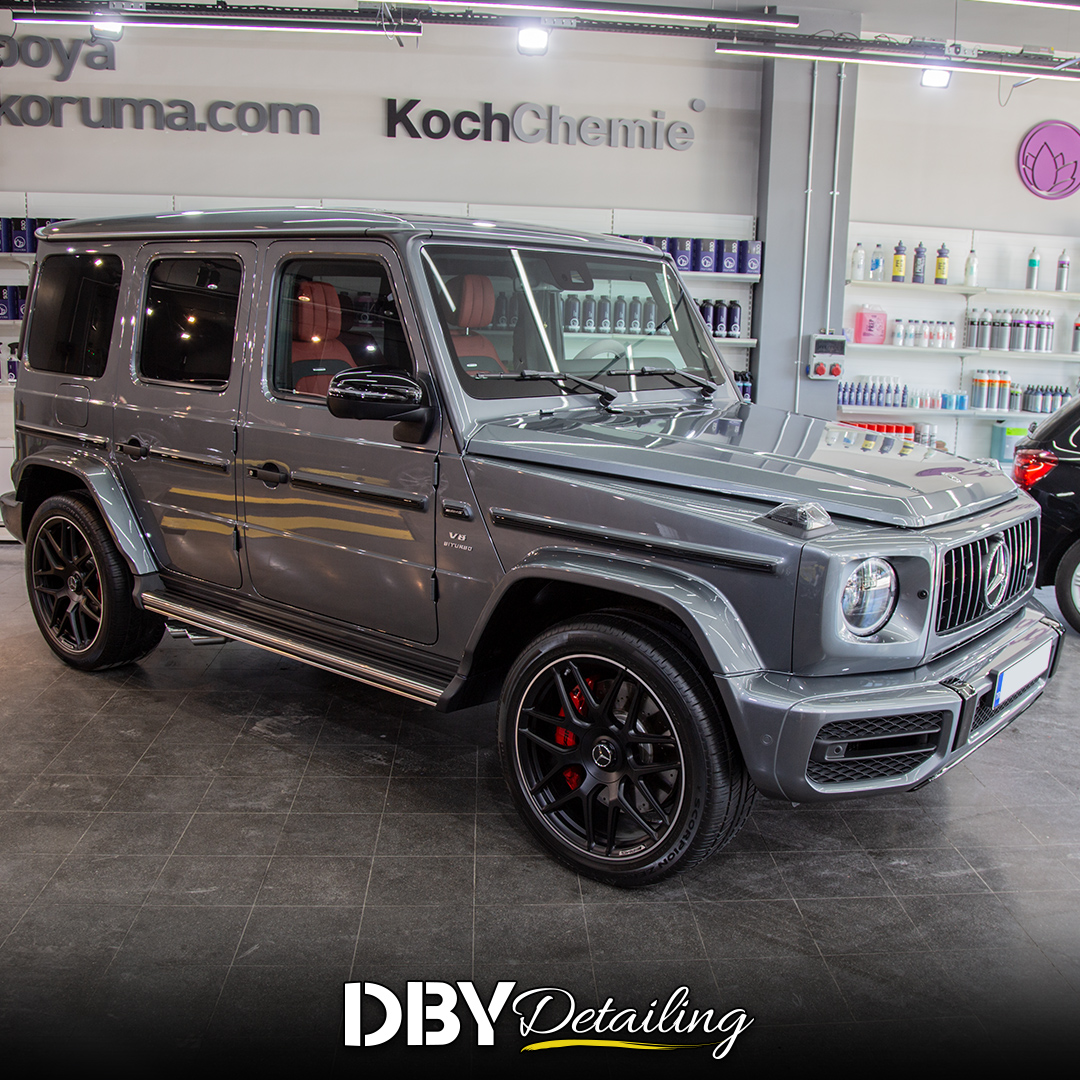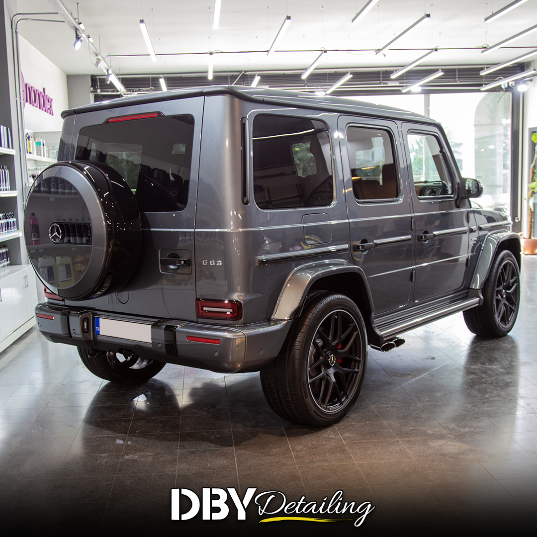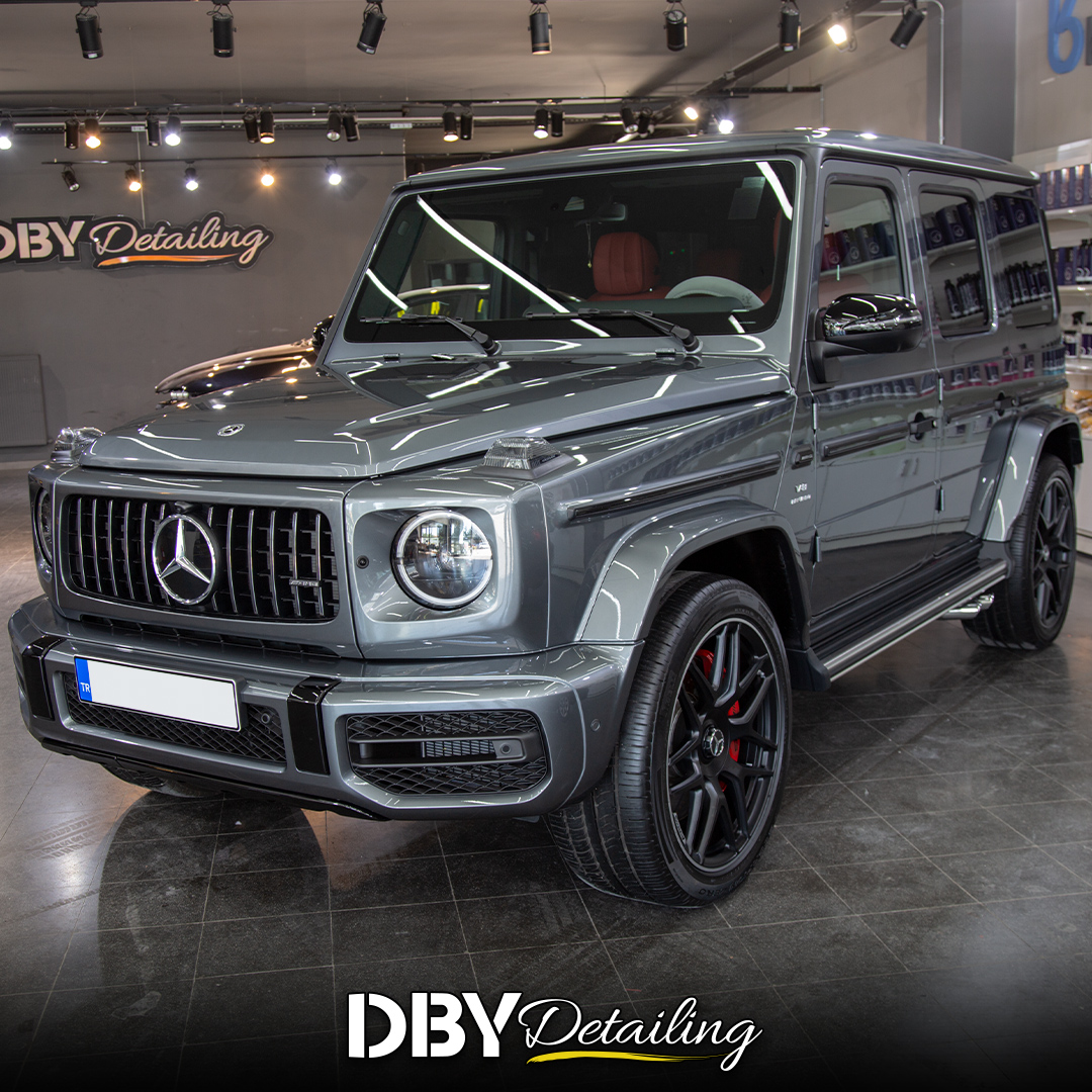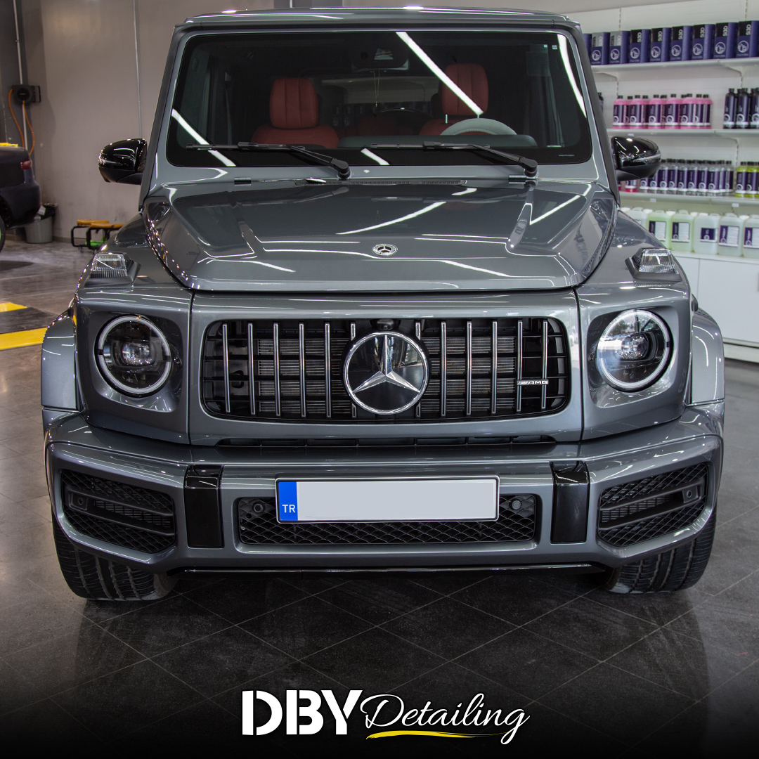 Detay kompleksimizin bir diğer misafiri Mercedes-Benz G63 için, Clif Designs Prima-K kullanarak ön 4 parça şeffaf boya koruma filmi uygulamalarını, Gtechniq Crystal Serum Ultra Seramik Kaplama uygulamalarını gerçekleştirdik.