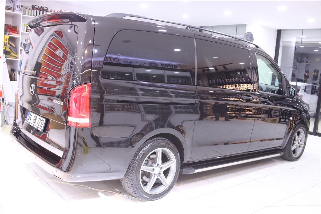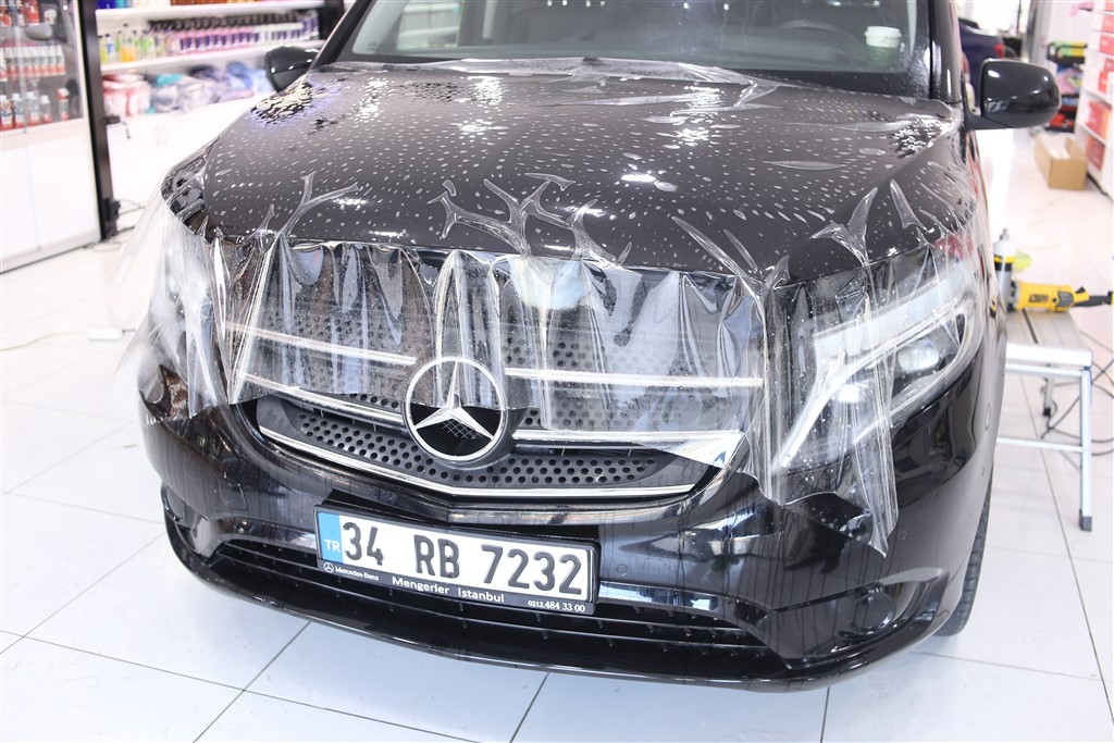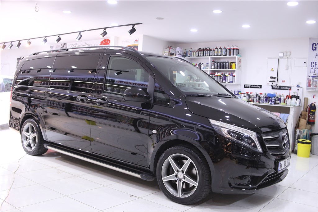 İstanbul’dan detay stüdyomuza gelen Mercedes Vito’nun detaylı temizlik işlemlerini ve Gyeon Iron ile demir tozu temizliğini tamamladık. Yüzeydeki mikro partikülleri ortadan kaldırmak için Gyeon Q2M Clay ile kil temizliğini bitirdik. Aracın dış aksamında polisaj aşamasında zarar görebilecek boyasız trimleri 3M Maskeleme Bantları ile yalıttık ve boya düzeltme-parlatma işlemlerine hazır hale getirdik.