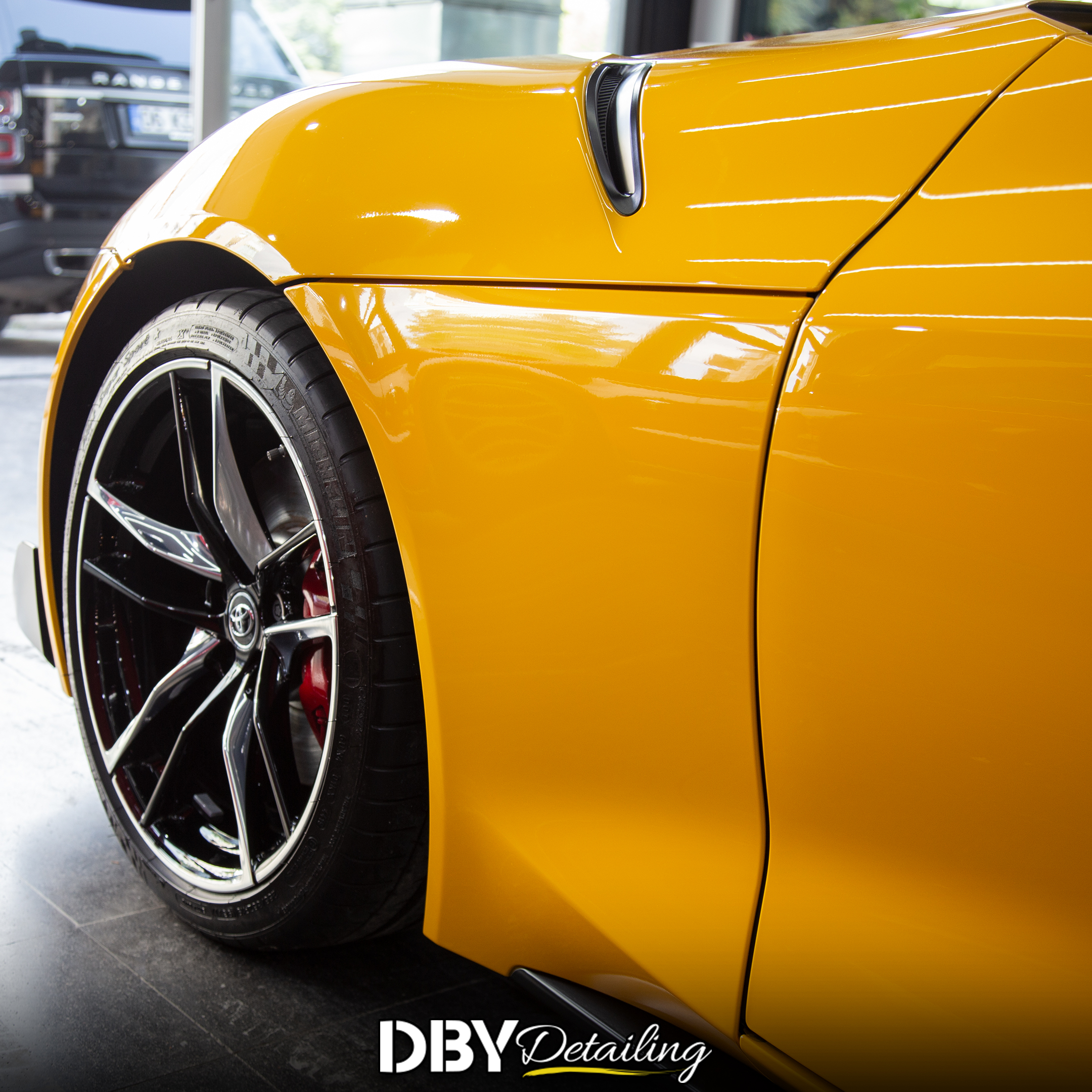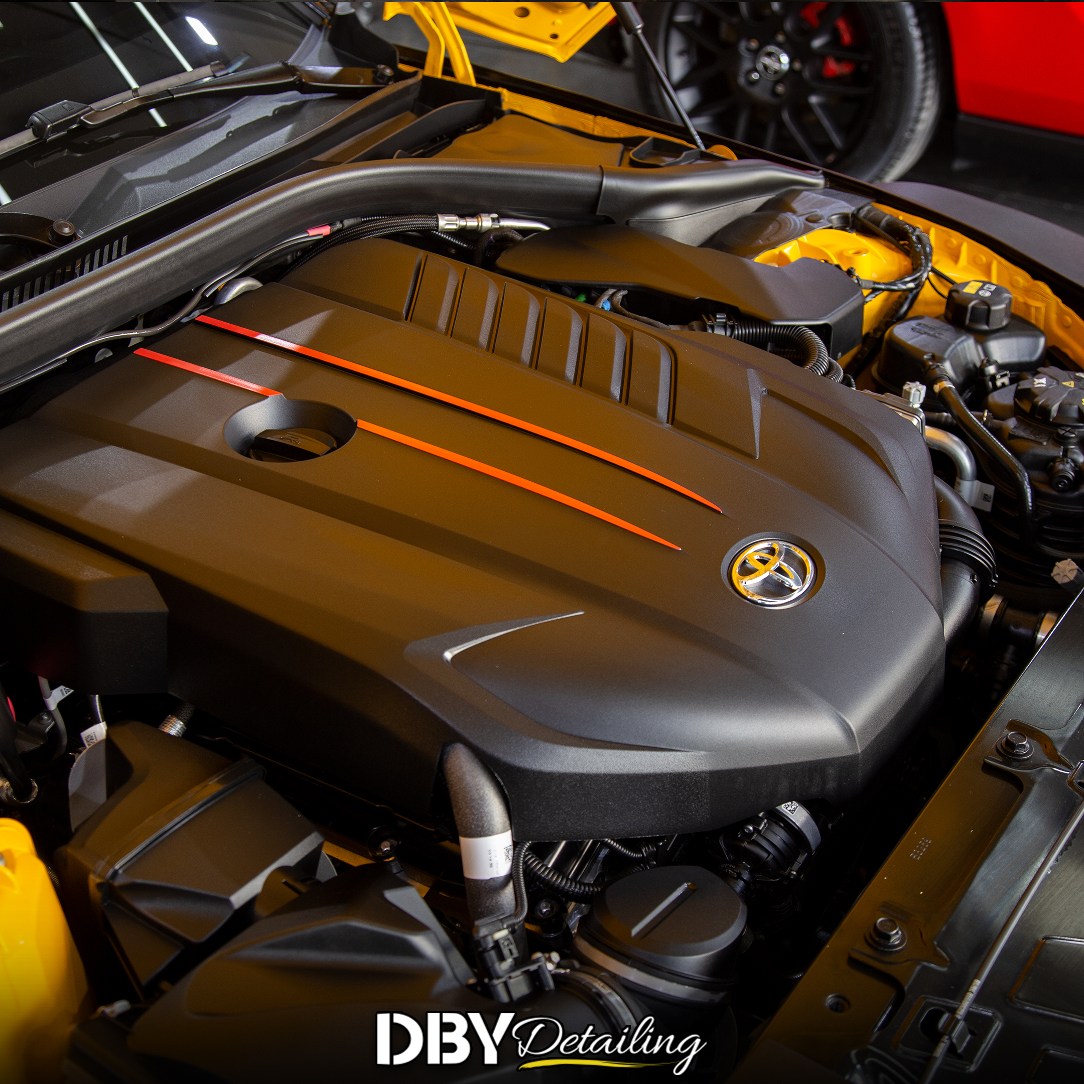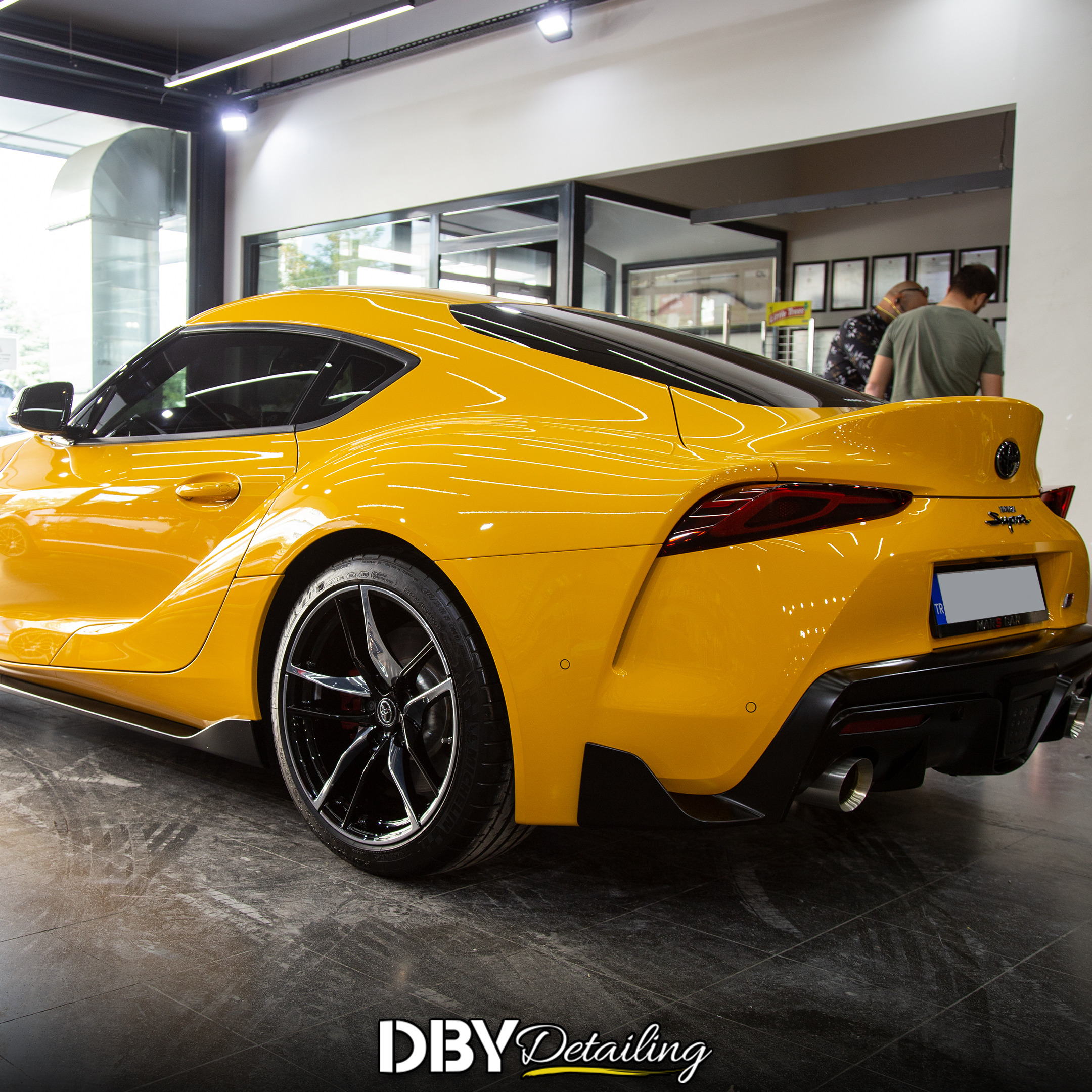 Aracı detay stüdyomuzun en alt katındaki yıkama alanına aldık. Köpük tankımıza eklediğimiz Nanolex Prewash Concentrate ile ön yıkama işlemlerine başladık. Nanolex Wheel Cleaner & Iron Remover ile demir tozlarından arındırdığımız vernik katmanına gömülen mikro-partiküller için Nanolex Clay Bar ile kil temizliğini tamamladık. Detaylı motor temizliği uygulamasının ardından KochChemie MP kullanarak motor koruma uygulamasını bitirdik. Plastik ve kauçuk aksamları 3M Maskeleme Bantları yardımıyla geçici olarak koruma altına aldık. KochChemie ürünleri ile 2 Aşamalı Boya Düzeltme ve Parlatma işlemlerimizi uyguladık. Ardından ön 4 parçada ve tavanda Clif Designs Prima-K kullanarak 10 yıl garantili şeffaf boya koruma filmi uygulamalarını gerçekleştirdik. Kaplanmayan kısımlarda ise Gtechniq Crystal Serum Black uygulamasını tamamladık. Jantlarda Gyeon Q2 Rim, dış plastik trimlerde, farlarda ve stoplarda Gyeon Q2 Trim kullanarak koruyucu kaplama işlemlerinin sonuna geldik. Aracın camlarında Nanolex Ultra Glass Sealant kullanarak cam su itici uyguladık. Son kontrollerimizin ve seramik kaplama ürünlerinin kürleşme sürelerinin ardından lastiklerde Nanolex Tire & Ruber Restorer kullanarak lastik koruyucu-parlatıcı uyguladık.