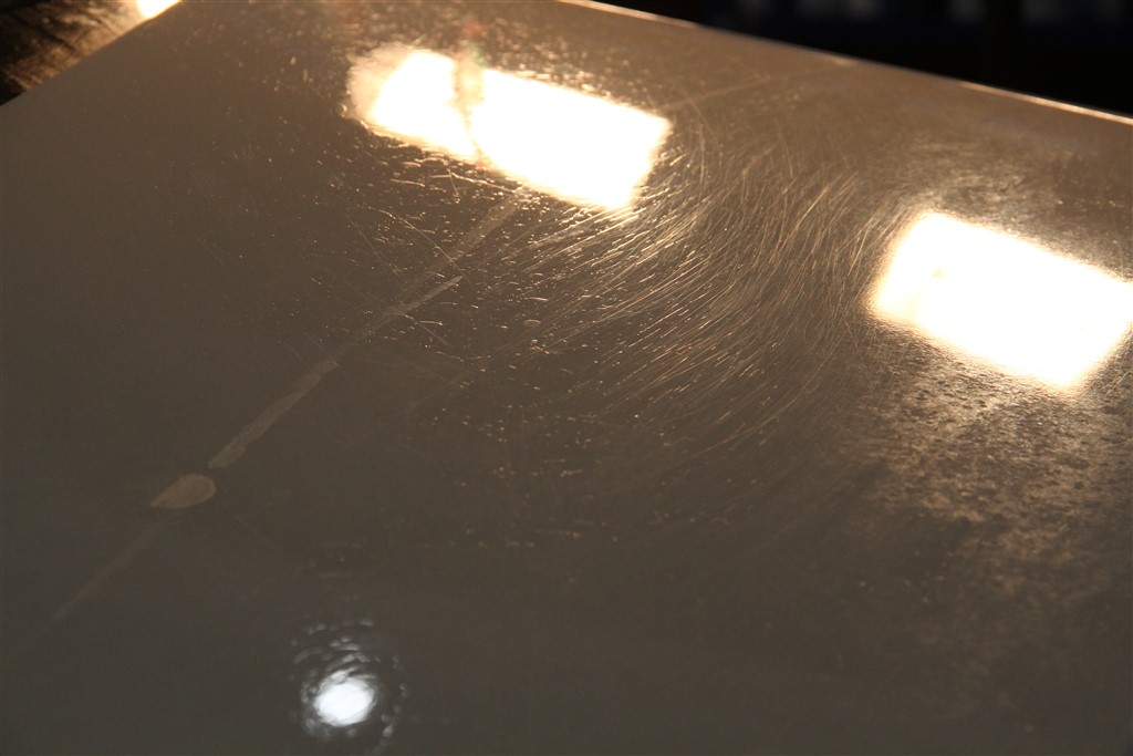 İlk iş olarak boyaya zarar veren maddenin kalıntılarını temizlemek için aracı fırça ile yıkamak durumda kaldık. Crystal Consept Sensei APC ve 3D Professional Orange Degreaser ile 2 kere yıkanan aracın boyasını zımpara ile düzeltmeye başladık.Yıkama işlemlerinin ardından en kötü durumdaki panel olan Bagaj kapağından uygulamalara başladık. İlk işimiz boya kalınlıklarını ölçüp tahmini bir yol haritası belirlemek oldu. Uygulama öncesi boya kalınlıkları 150 ile 130 mikron arası değişkenlik gösteriyordu. İlk olarak 1200 grit zımpara ile işlemlere başlayıp ardından 1500-2000-2500 ve 3000 grit zımparalarla olabildiğince düzeltme sağlamaya çalıştık. Ancak %20 civarında derin izler geçmediği için bagaj kapağını tekrar 1200-1500-2000-2500 ve 3000 grit zımparalar ile zımparalayıp diğer panellere geçtik.