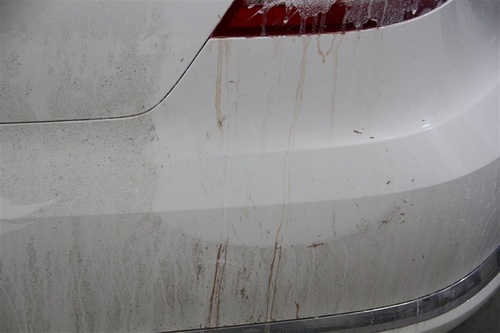 Aracımız 2013 Model Beyaz Renkli VW Passat Comfortline. Araç sahibi aracını cumartesi günü akşam saatlerinde evinin arkasındaki otoparka park etmiş ve pazar günü öğlen aracı ile bir yere gitmek istediğinde bu tatsız durumla karşılaşmış. Hemen polise ihbarda bulunmuş ve olay yeri inceleme ekipleri gelip numuneler almışlar. Daha sonrasında da aracın onarımı ile ilgili olarak Yetkili Servis ve özel servislere danışmış ancak herkes aracın tavanı dahil komple boyanması gerektiğini, başka türlü kurtulmasının bir yolu olmadığını bildirmiş. Ayrıca deforme olan plastik parçaların da değişmesi gerektiğini söylemişler. Yapılan kaba hesapla araç üzerinde 12-13bin tl civarı bir hasar belirlenmiş.